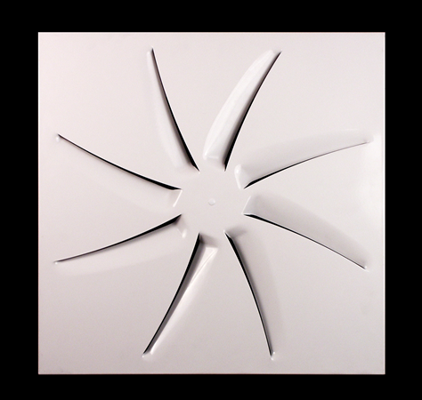 The swirl diffusers of OTO Series are designed to be used in air conditioning, ventilation and heating systems at a temperature differential up to 12°C. They can be mounted in false ceilings or suspended from the ceiling, from 2,6 up to 4 metres high. The OTO diffusers allow a flow variation of 60% keeping the air stream stable. The radial configuration of its eight sections produces a rotational induction of air with Coanda effect and the high airflow rate reduces stratification. The particular design of the vents creates a uniform airflow along the length of each aperture. As a result of the collaboration with Lievore, Altherr & Molina, the original design of the OTO diffusers allows manufacture from a continuous sheet, without any edges which highlight an assembled construction. This results in very smooth airflow characteristics, optimising its design function and reducing the visual impact within the architectural surroundings.