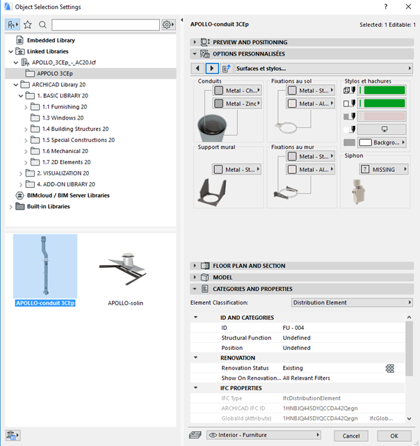 7) Los conectores son elementos esenciales que no deben tomarse a la ligera. Son especialmente útiles en productos HVAC y MEP y permiten indicar el sentido del flujo en un objeto BIM (un grifo, por ejemplo, incluye tres conectores: una entrada de agua caliente, una entrada de agua fría y una salida). Al usarlos también es posible distinguir un componente MEP de un componente arquitectónico o estructural. Su utilidad principal es definir la continuidad de los elementos de una red y su comportamiento con respecto a otras. La configuración incorrecta de los conectores impedirá el uso adecuado del objeto BIM y, por lo tanto, provocará un mal funcionamiento de la red asociada al mismo. Y lo que es peor aún, un componente que carezca de conectores no podrá participar en una tipología de sistema.