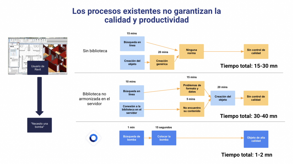 Este caos no se limita a la simple búsqueda de objetos. Tiene un impacto directo en los plazos y costos de los proyectos. A menudo, los equipos tienen que empezar desde cero para cada nuevo proyecto, por falta de una base de datos centralizada y coherente. Esta repetición innecesaria de trabajo impide capitalizar las experiencias pasadas y perjudica la calidad general de los proyectos.